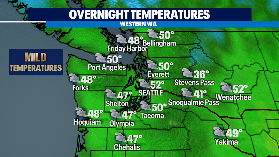 For Tuesday night, we'll cool off with temperatures getting down into the upper 40s to low 50s, which is pretty mild for this time of the year.