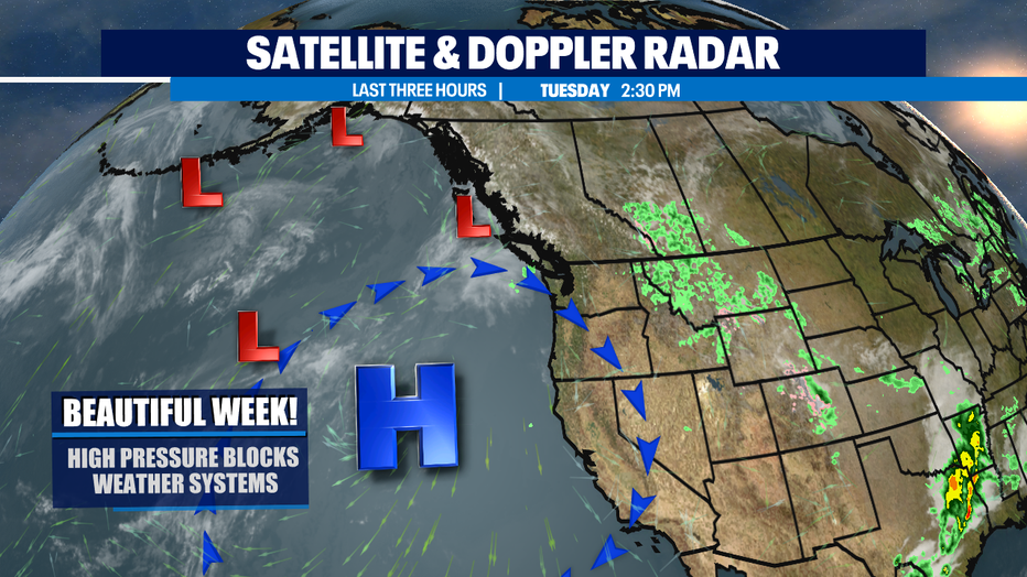 Thursday through Sunday we'll see temperatures climb as high-pressure blocks weather systems from finding their way into the Northwest. By Sunday highs land in the mid-70s; those are June-like temps so be sure to keep the sunblock and sunglasses handy!