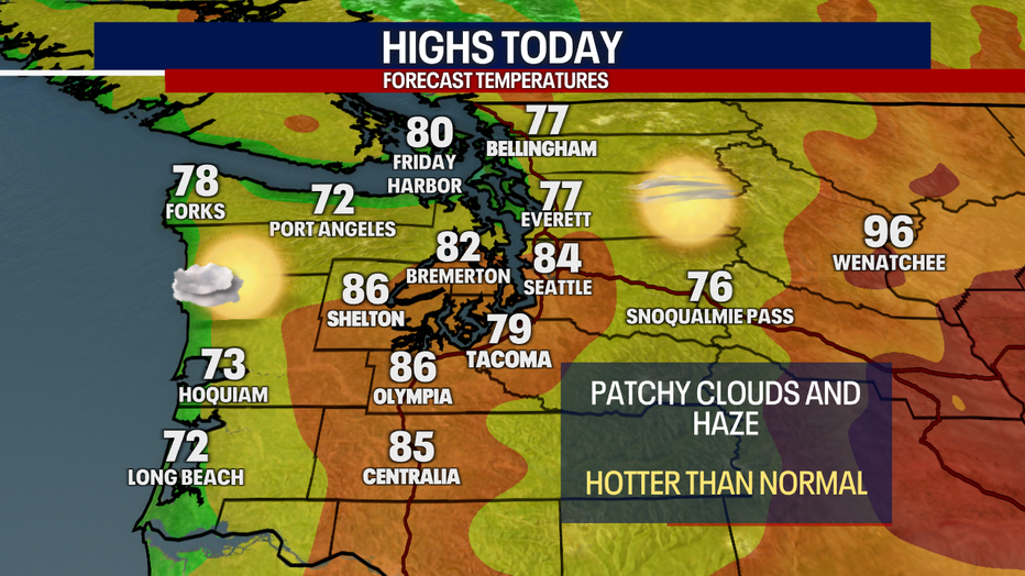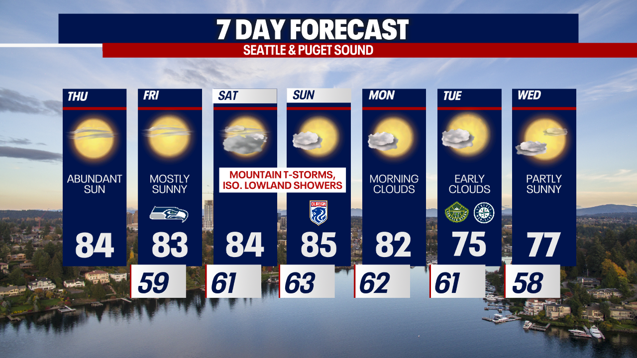 SEATTLE - Over the next five afternoons, highs around Puget Sound could be slightly sweltering – warming to the mid 80s for many backyards.