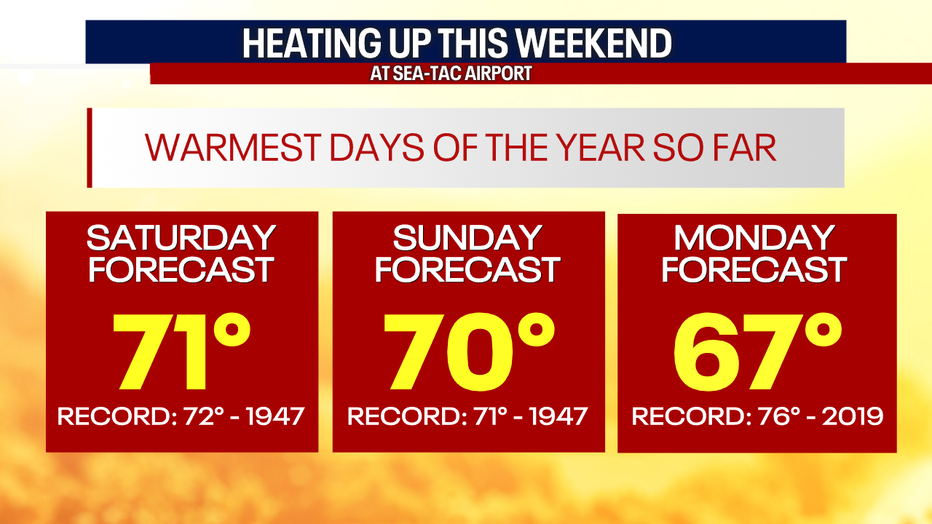 SEATTLE - Western Washington will be basking in the warmest temperatures of the year so far as a strong ridge of high pressure settles in over the Pacific Northwest this weekend.