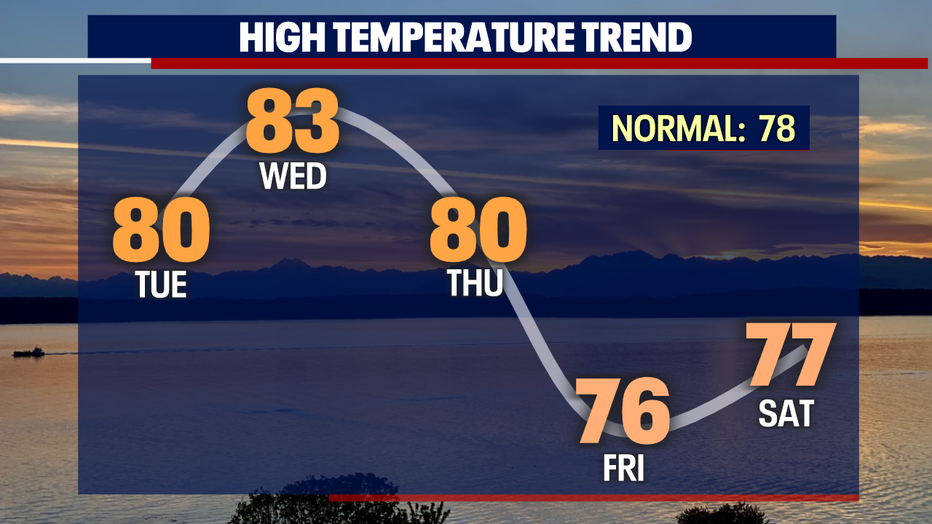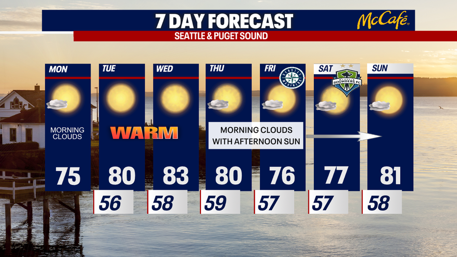 SEATTLE - Hope you've made some plans to enjoy the beautiful summer weather this week. The low 80s return Tuesday and stick around through Thursday!