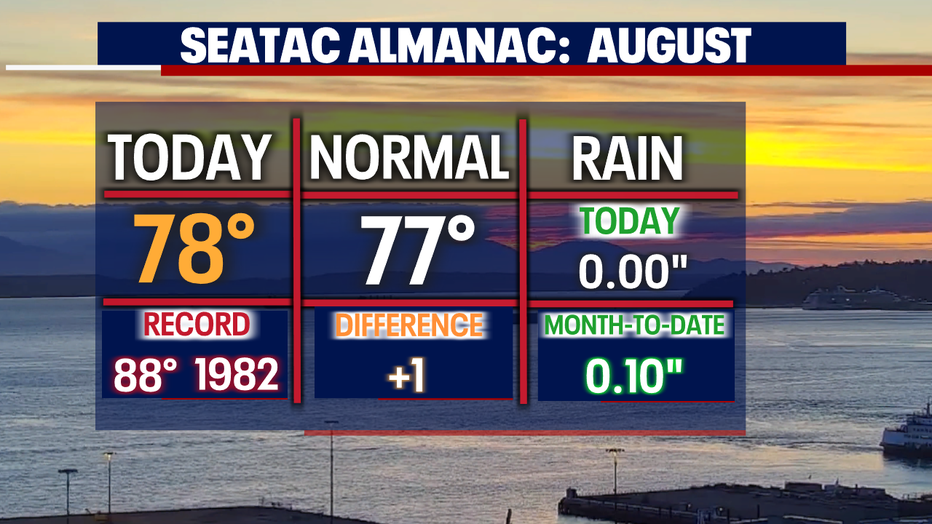 Seattle - Another day in the books in the 70s. SeaTac hit 78 at the airport with warmer highs to the south.