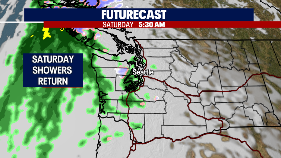 The roller coaster weather ride continues with another front riding in as we get into the weekend. Look for a mainly dry start inland with showers at the coast early. By the afternoon showers make their way into Puget Sound with highs in the mid 50s.
