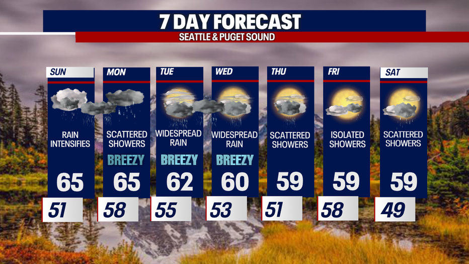 Seattle - Temperatures will remain below normal once again tomorrow. The clouds will be thick along with the return of more rain. Here is a break-down of your forecast: