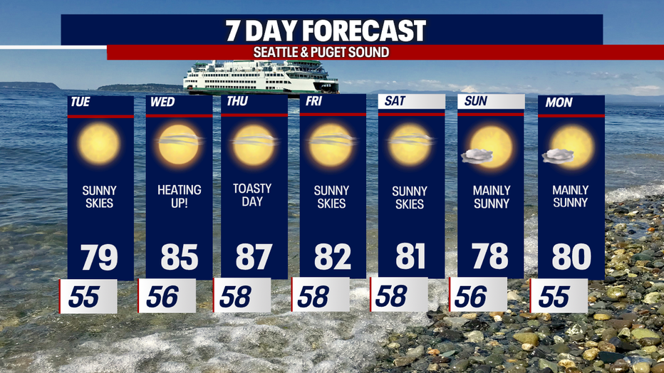 SEATTLE - Expect a cooler Tuesday morning. Temperatures will fall into the mid-lower 50s under clear skies. Get ready for sunshine all day long!