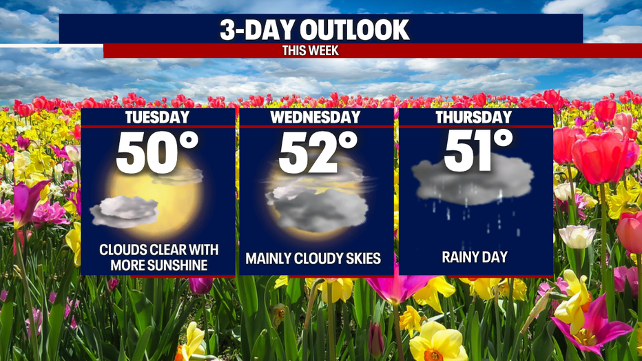 Tuesday: More sunshine and slightly warmer