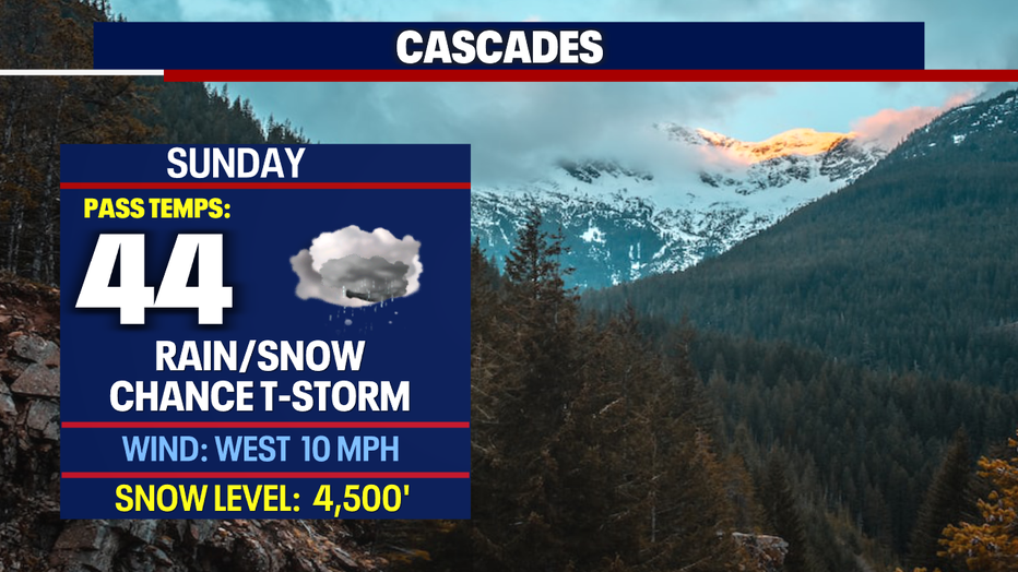And if you're traveling through the mountains, you just might see some snow mixing in with rain in the higher elevations. Snow levels drop to 4,500ft! Just to give you some perspective, Stevens Pass sits about 4,000ft.