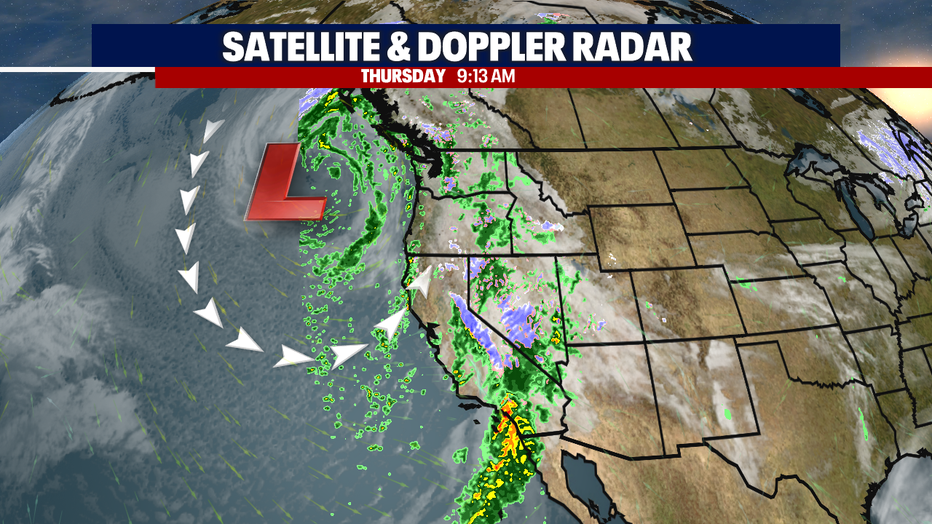 An offshore low pressure system continues send rain into the Pacific Northwest, but showers are lightening up today. Cooler drier weather is on tap as we head into the weekend.