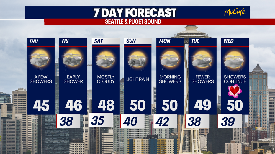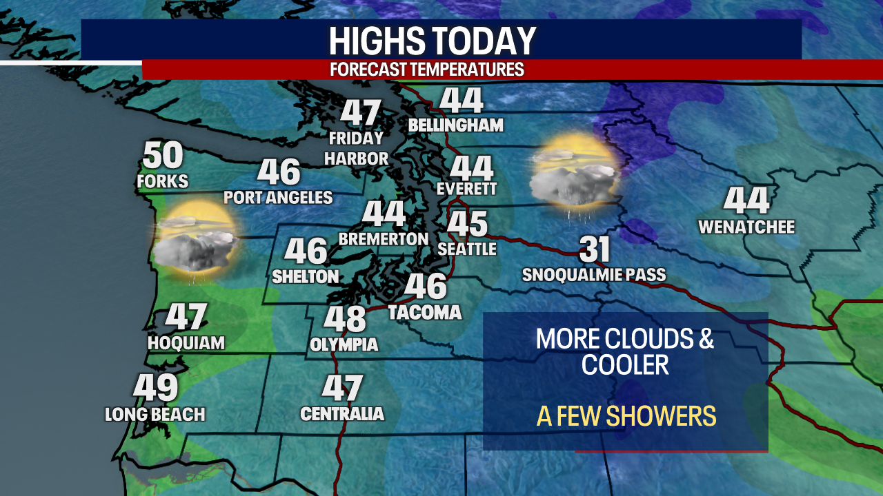 Seattle - Isolated showers and cooler temperatures are in the forecast for Thursday, but the end of the week will be drier and sunnier.