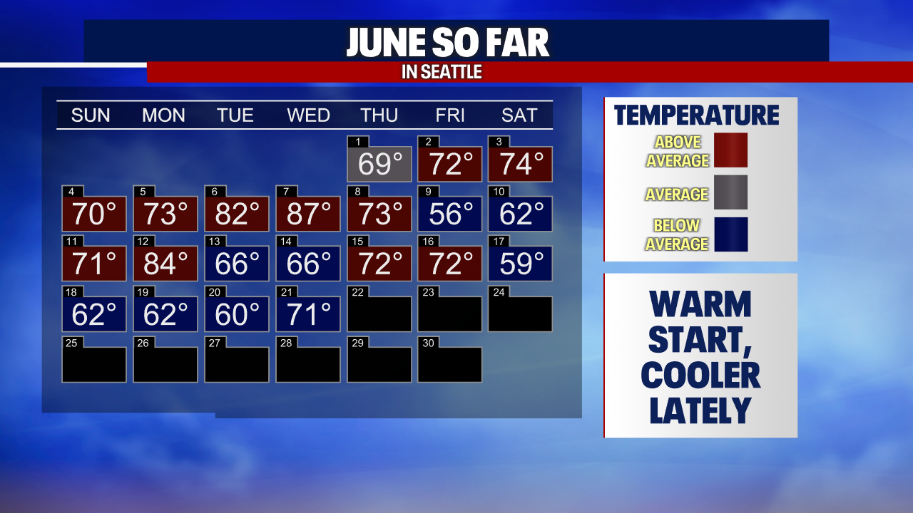SEATTLE - Summer weather returns as Western Washington shifts to warmer and sunnier to end the month of June.