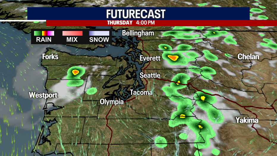 Most of the action will be in the higher elevations, but there is a chance that a stray thunderstorms rolls off the mountains into the lower Cascade foothills or even the valleys. We will be tracking these through the afternoon and early evening.