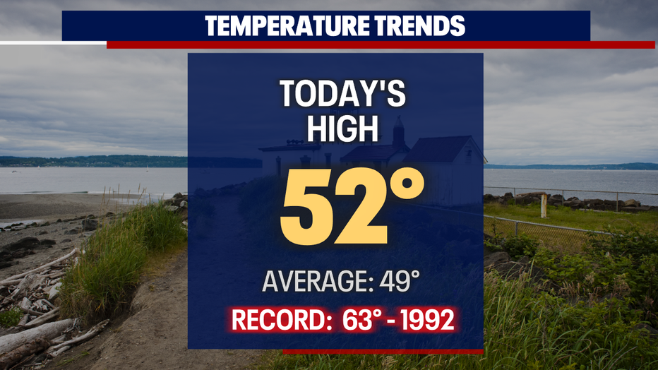 Seattle - Temperatures Saturday finishing several degrees above average for many locations across Western WA. SeaTac hit 52 making that now three days in a row above normal.