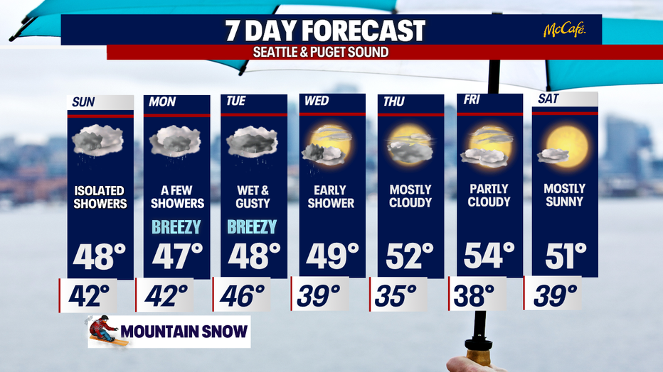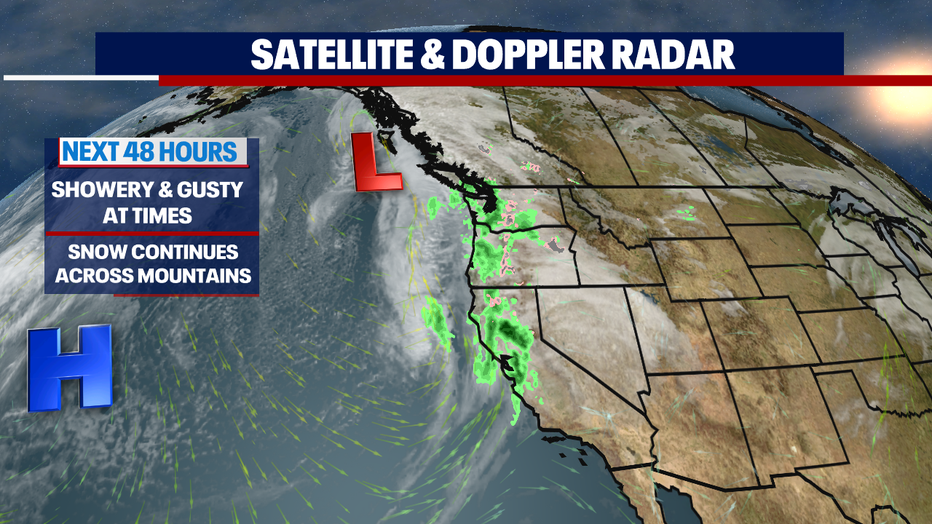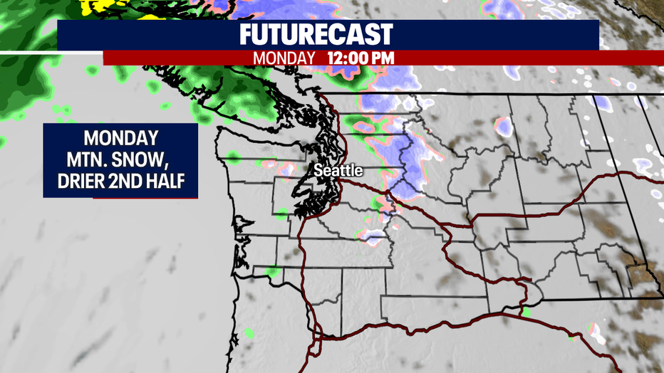 The mountains will continue to see snow, mainly for the north and central Cascades first before falling south for a quick dusting.