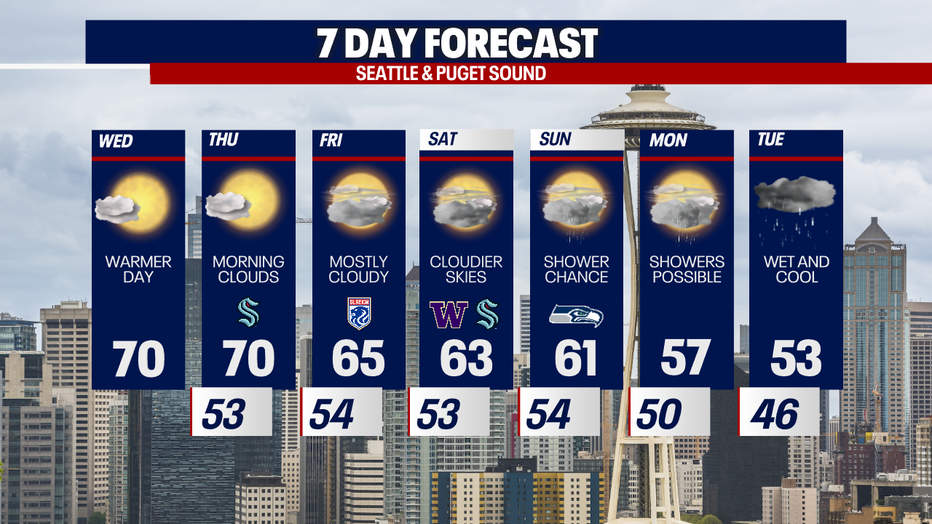 SEATTLE - Wednesday will bring unusually warm temperatures and plenty of sunshine to the Puget Sound area as a ridge of high pressure settles in over the Pacific Northwest.