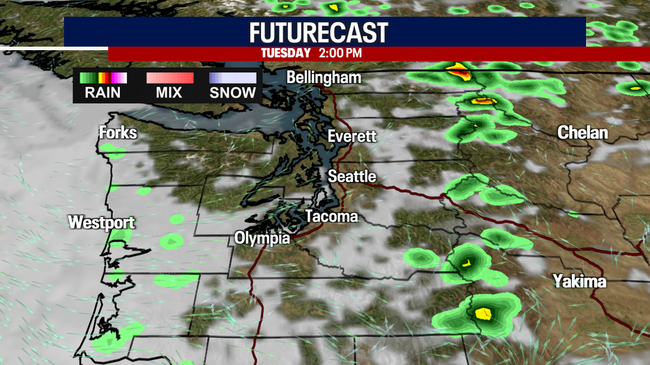 The Cascades will see another risk of afternoon and evening thunderstorms. These could also impact areas around Central Washington.