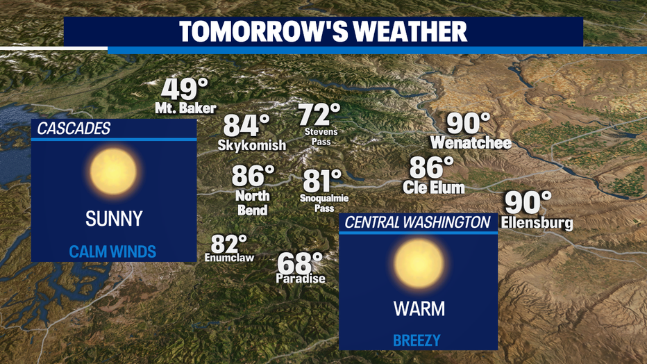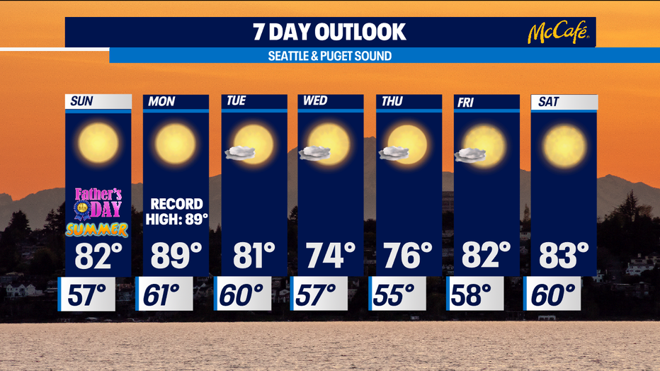 SEATTLE - After a mild day across Western Washington, temperatures are going to be heating up! Father's Day around Puget Sound will be in the lower 80s. There will also be ample sunshine, so don't forget to practice heat safety if you're going to be outdoors.