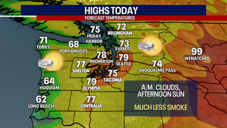 Thanks to a return of westerly winds, smoke will be much less of a concern the next few days. The onshore flow is helping scour out any leftover pollution and ushering in cleansing, cleaner air from the Pacific Ocean.