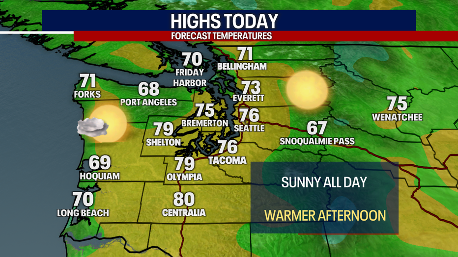 SEATTLE - The last hours of summer will be beautiful today with sunny skies and warmer afternoon high temperatures.