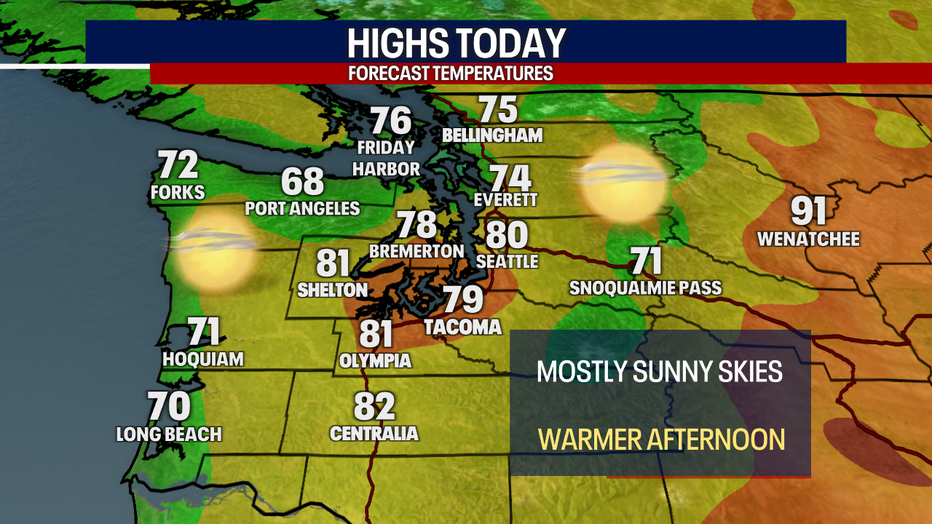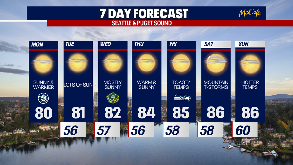 Seattle - Plenty of sunshine is expected this week with slowly warming temperatures through next weekend.