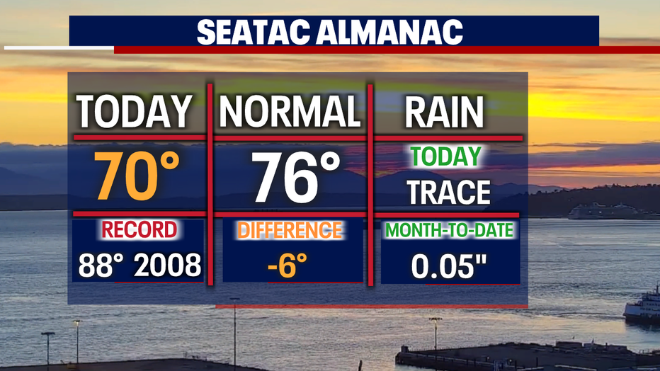 Seattle - A cool Saturday with highs only reaching 70 around Seattle. Normal for this time of year is 76.