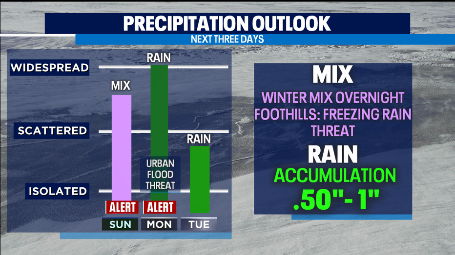 SEATTLE - The Q13 team is issuing another Weather Alert Day due to the chance of freezing rain and urban flooding on Monday.