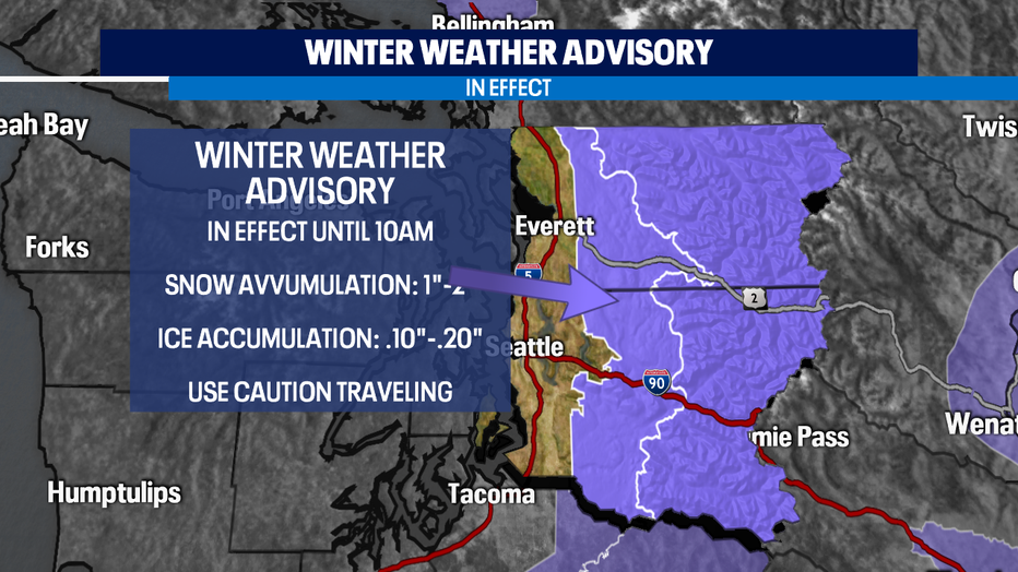 This is allowing for the snow to transition into a winter mix/rain. Use caution if you must. Winter Weather Advisories are still in place across Western Washington.