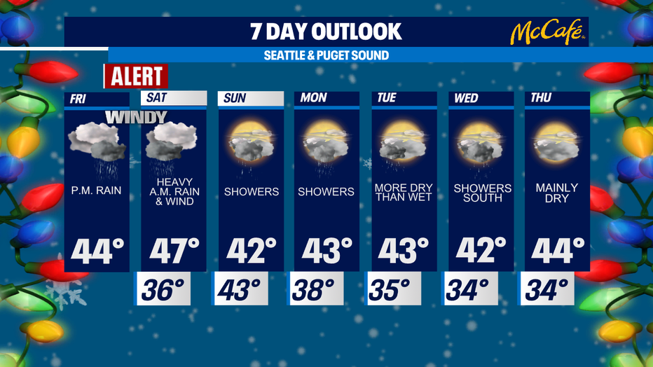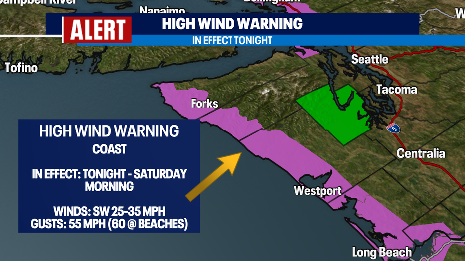 Seattle - FOX 13 meteorologists have issued a "Weather Alert" for Friday night into Saturday as a strong storm moves into Western Washington.