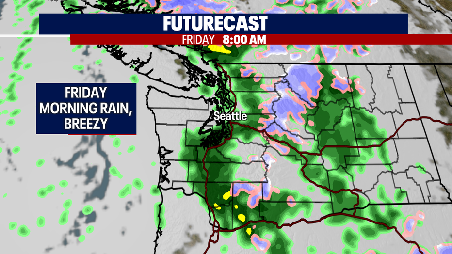 Your Friday morning commute will feature showers along the I-5 corridor, but by midday, they'll move off to the northeast into the mountains and across the Canadian Border.
