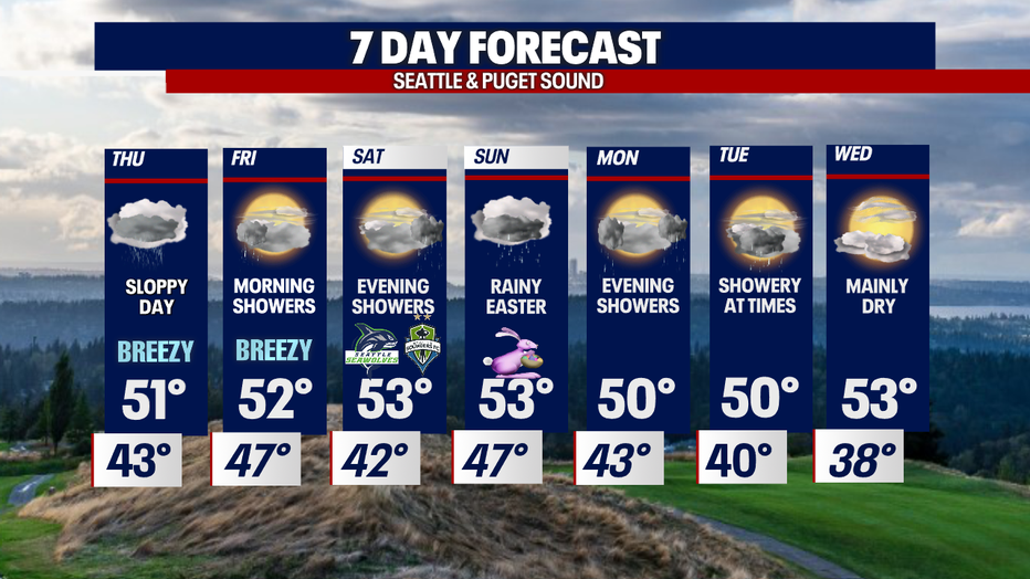 Seattle weather: Wet & windy Thursday, showery Friday, & drier Saturday