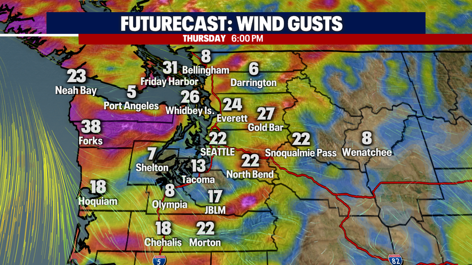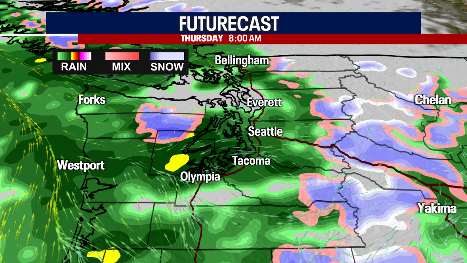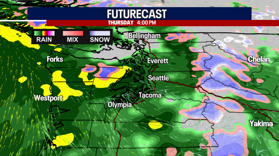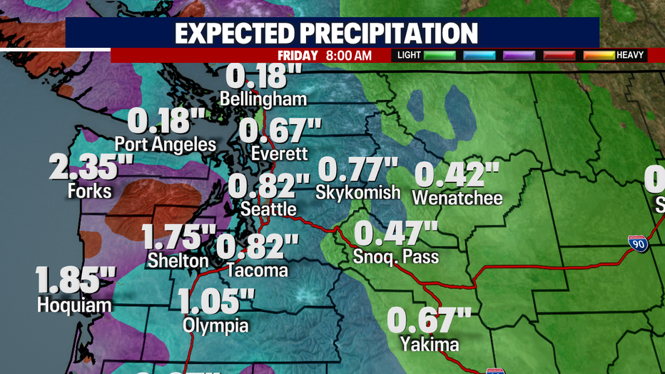 Here's a peek at forecast rain totals through Friday morning with the highest amounts falling at the coast and over the Olympic Mountains: