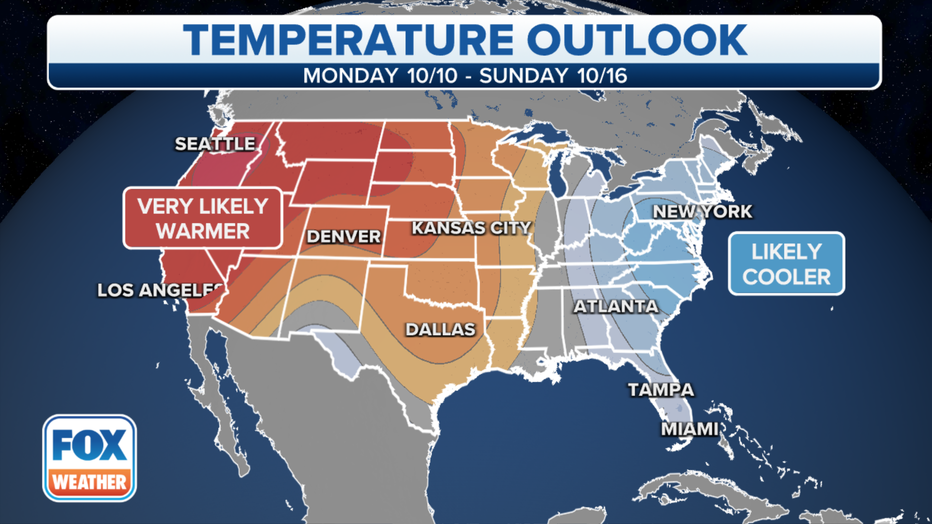 The 8- to 14-day extended forecast from NOAA's Climate Prediction Center shows continued above-average temperatures across the West well into the middle of October.