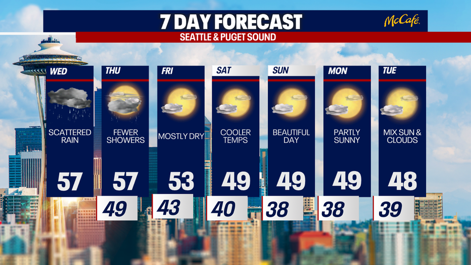 The heaviest rain will hit south of Washington State through Thursday, but consistent showers will still impact Western Washington.