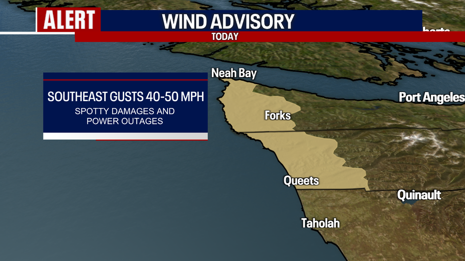This will not be a major storm by coastal standards, but gusty winds could bring some tree limbs down and cause scattered power outages in spots along the northern Washington Coast. A Wind Advisory is in effect for the area.