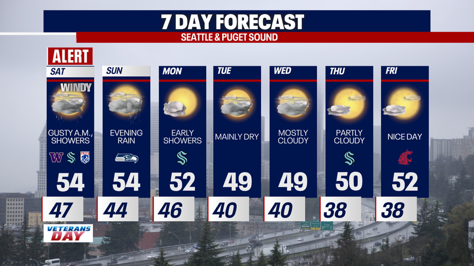 Rain and gusty wind to hit Western Washington Friday night into Saturday.